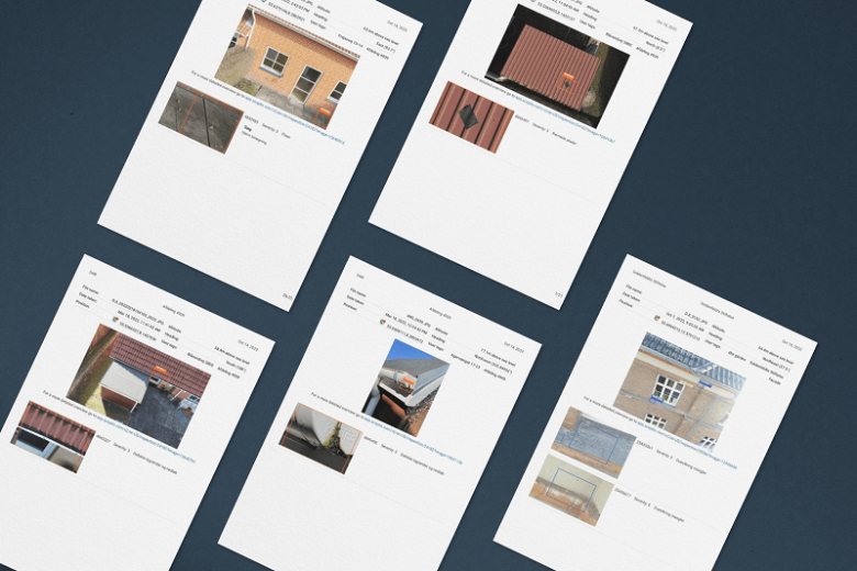 Foruden rapporten får du selvfølgelig ejerskabet til al den billededokumentation, vi indsamler. Du kan dermed nemt følge udviklingen og begynde at sammenholde tilstanden over tid. Alt sammen for at du bedre kan optimere din drift og vedligehold af bygningsmasse.
