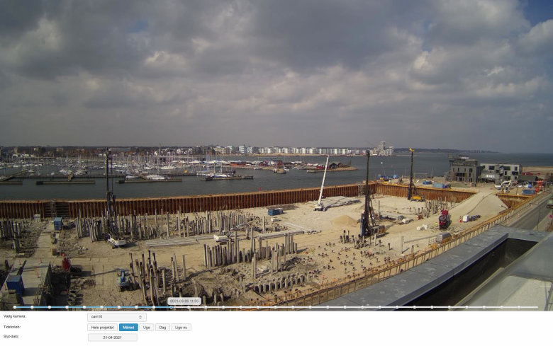 Følg udviklingen på jeres projekt med 5 minutters intervaller fra start til slut. Vi opstiller kamera på den ønskede position med vejledning fra vores specialister, det eneste krav er 230V udgang til kameraet. I får link til hvert kamera med og uden dato/tid og også link til en timelapse player, hvor I kan spole frem og tilbage på tidslinjen.